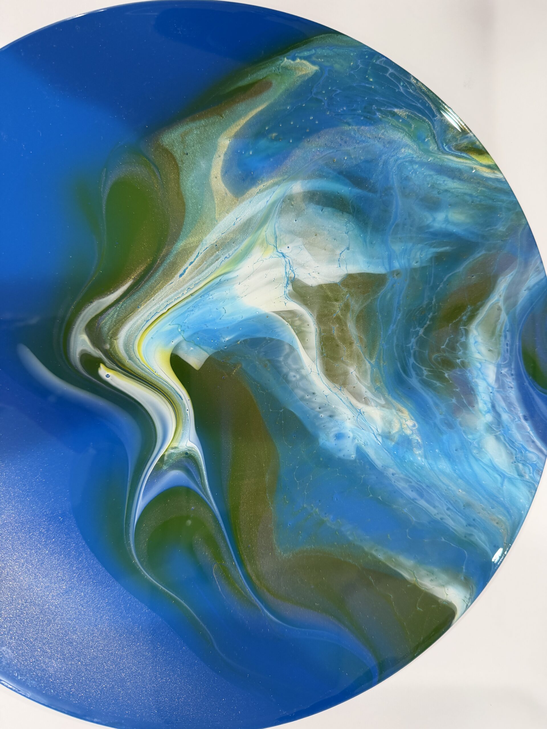 Each Drip Drop Art Creations piece is handmade and one-of-a-kind — tiny variations are part of its living charm. Please avoid alcohol-based cleaners to preserve the glossy finish.